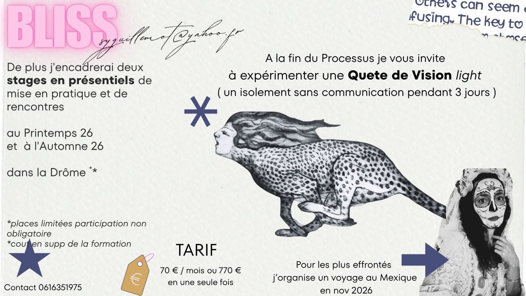 Grace a des exercices de symbolisation et de lâcher prise, vous allez prendre du recul par rapport à certains fonctionnements que vous avez.